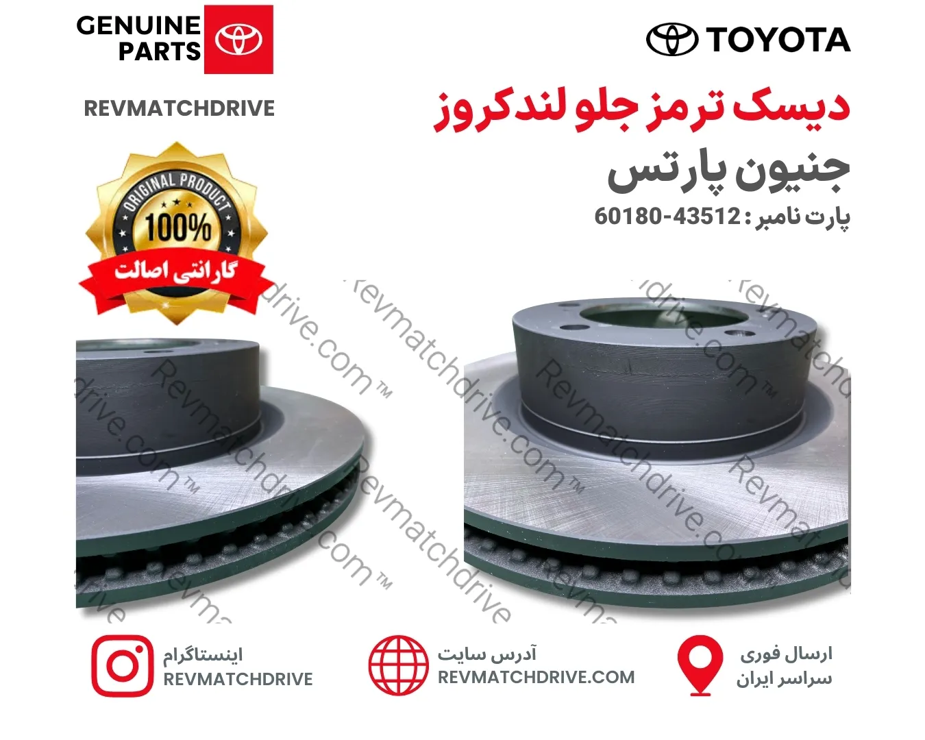 دیسک ترمز جلو تویوتا لندکروزر 200 مدل 2008 تا 2021 اصلی برند جنیون پارتس شرکتی با تضمین اصالت